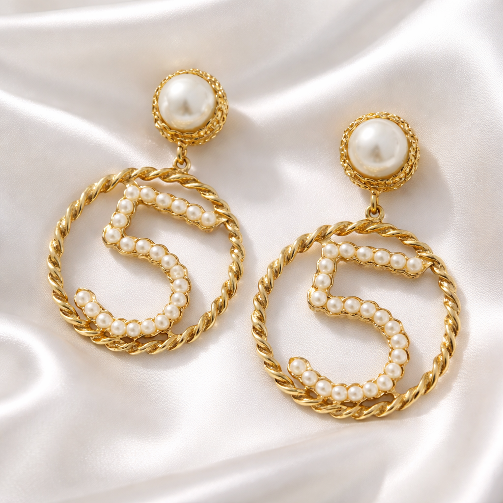 ΣΚΟΥΛΑΡΙΚΙΑ ΜΕΓΑΛΑ ΧΡΥΣΑ ΣΤΡΟΓΓΥΛΑ ΜΕ ΤΟ ΝΟ5 ΚΑΙ ΠΕΡΛΕΣ .ΔΙΑΜΕΤΡΟΣ 6 ΕΚΑΤΟΣΤΑ