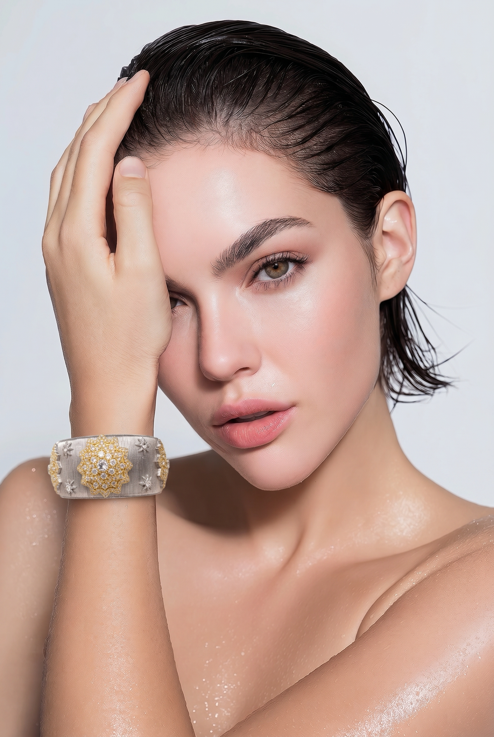 Εντυπωσιακο φαρδυ βραχιολι απο ατσαλι με χρυσα σχεδια και καρφωτα ζιργκον. συνδυαζεται και με το ιδιο δαχτυλιδι. κοστος σετ 69 ευρω. επικοινωνηστε μαζι μας σε περιπτωση που επιθυμειτε το σετ.