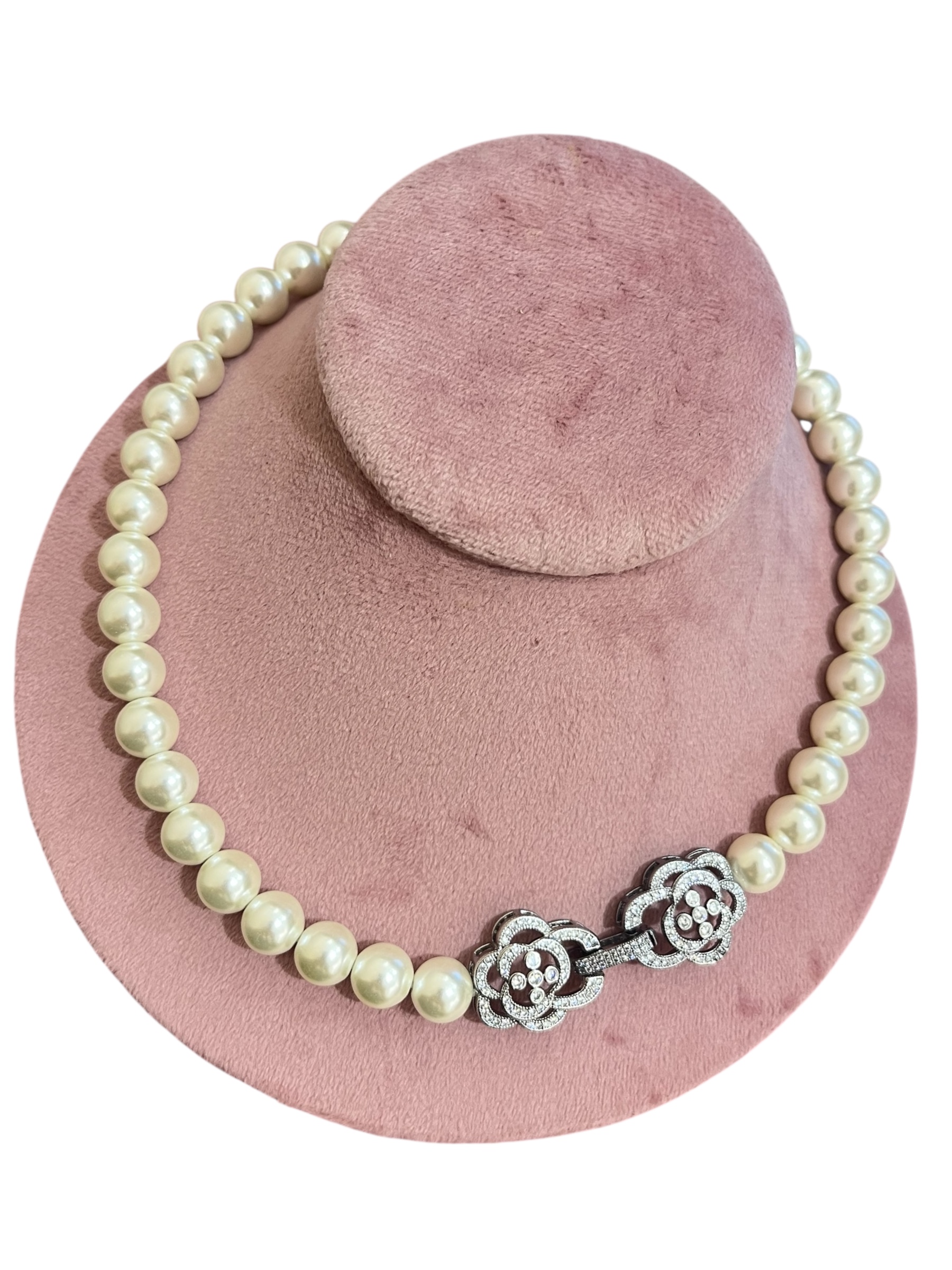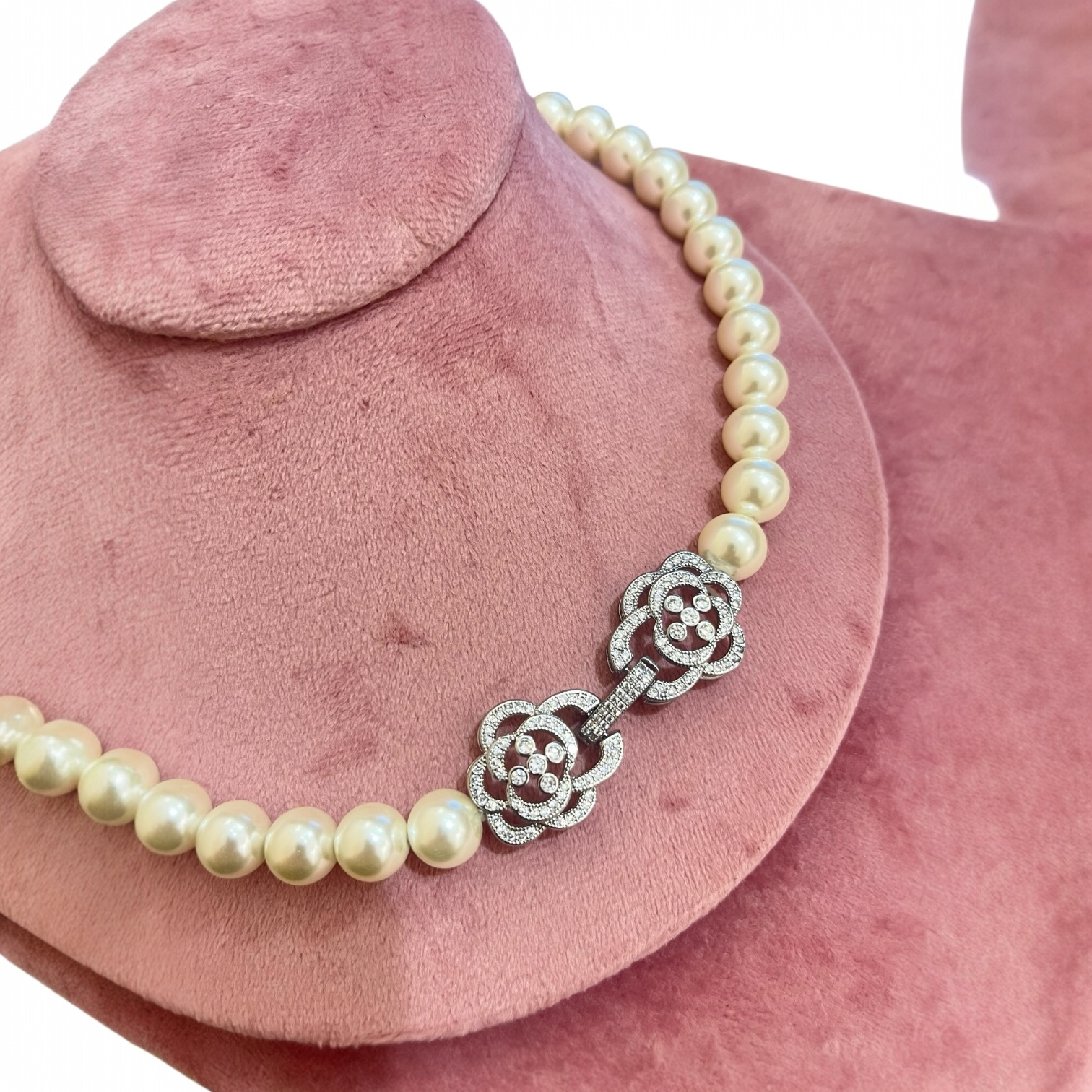 Κολιέ κοντό με πέρλα με κούμπωμα από ασημι με ζιργκον.μηκος 40 εκατοστά .