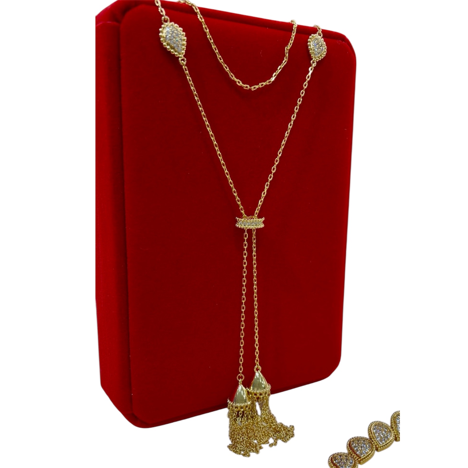 Κολιε μακρυ χρυσο με φουντα σετ με σκουλαρικια