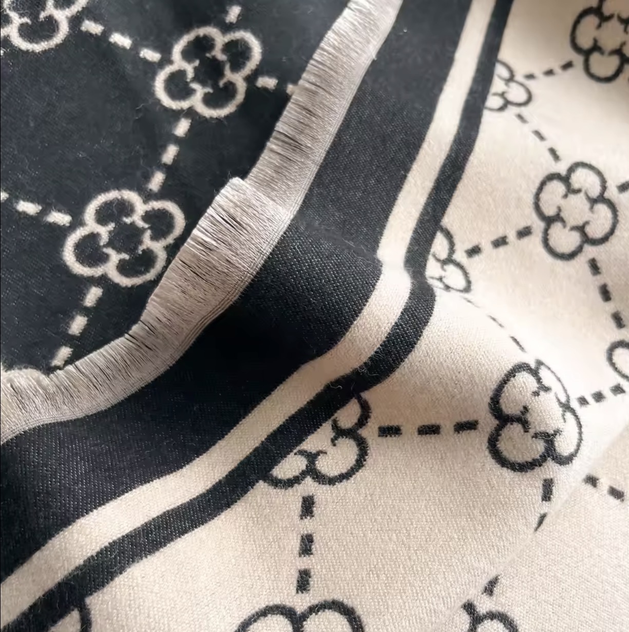 Πασμινα μεγαλη και ζεστη σε μαυρο χρωμα με μπεζ μοτιβα. διαστασεις 180Χ75