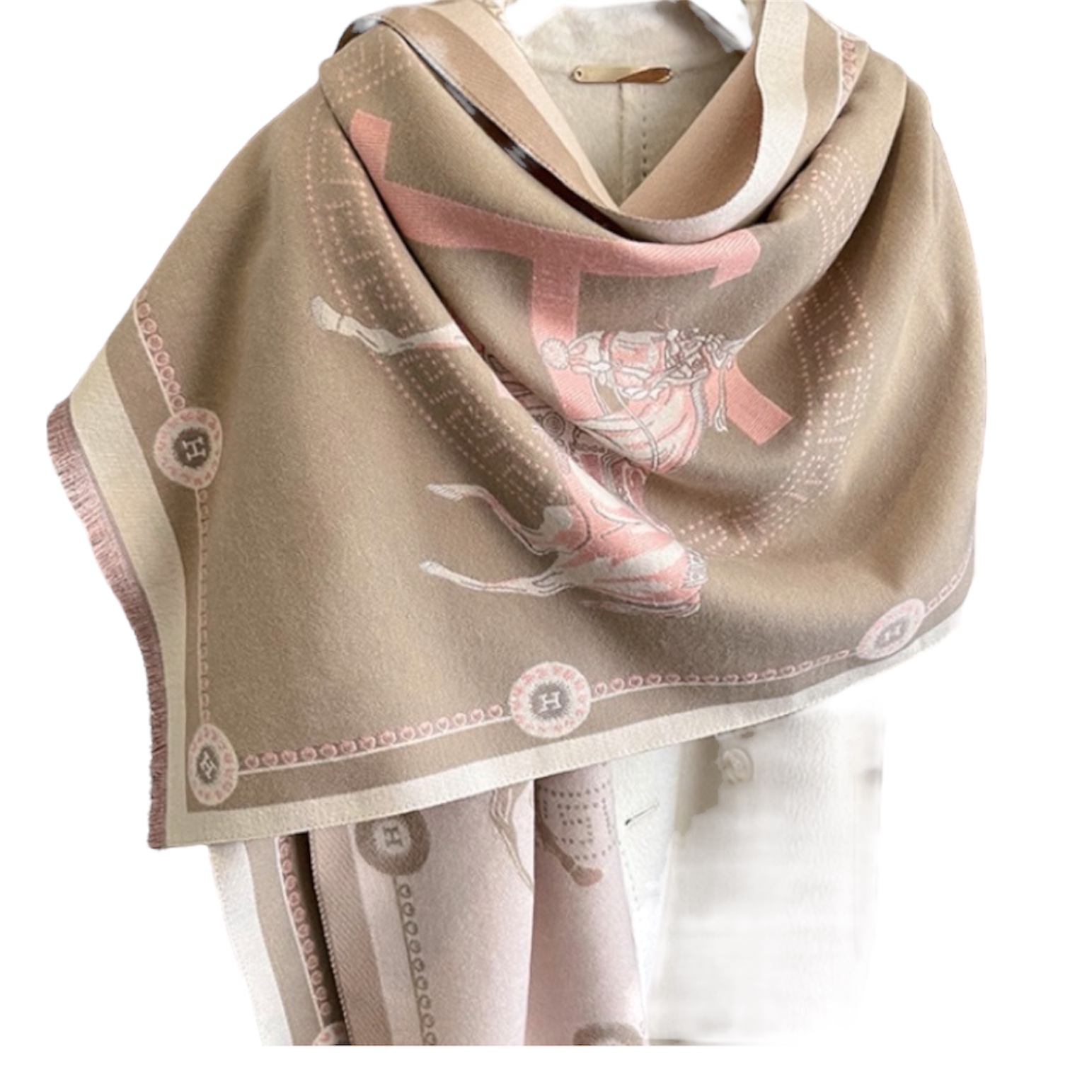 Πασμινα μεγάλη και ζέστη κασμιρένια σε μπεζ και ροζ αποχρώσεις με αλογάκι. διαστάσεις 175Χ70 εκατοστά