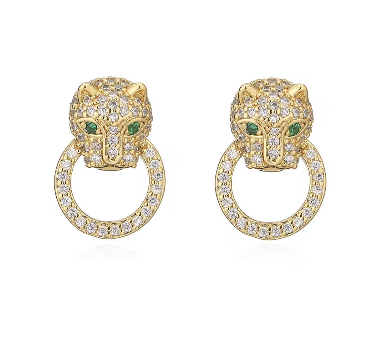 Σκουλαρικια κολλητα μικρα χρυσα πανθηρας απο ατσαλι επιχρυσωμενο με καρφωτα ζιργκον. διασταση 1,20 εκατοστα