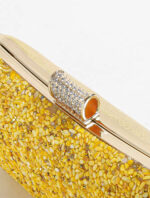 Τσαντάκι βραδινό κίτρινο με πέτρες και χρυσό στόμιο. αλυσίδα εσωτερικά χρυσή για να κρεμιέται. διαστάσεις 20Χ13Χ5 εκατοστά