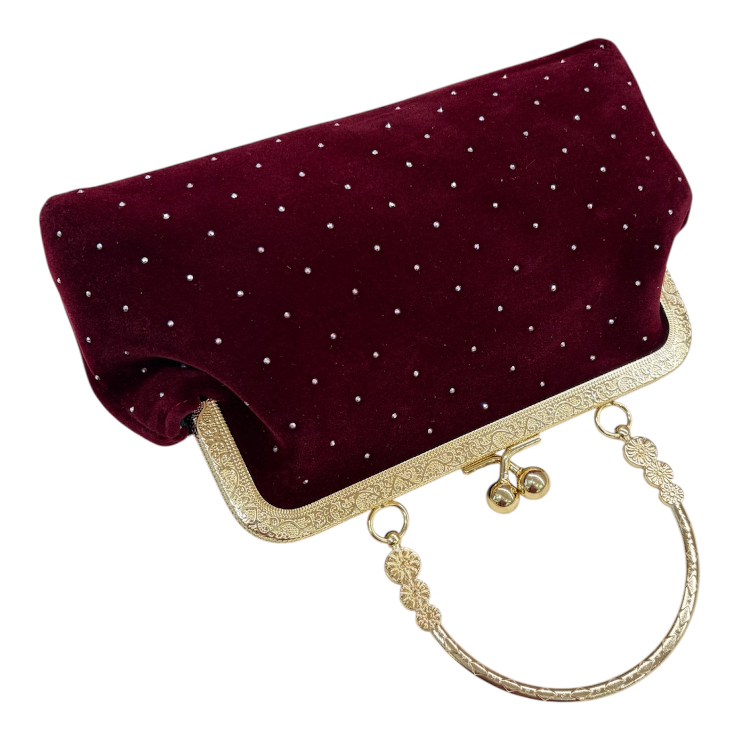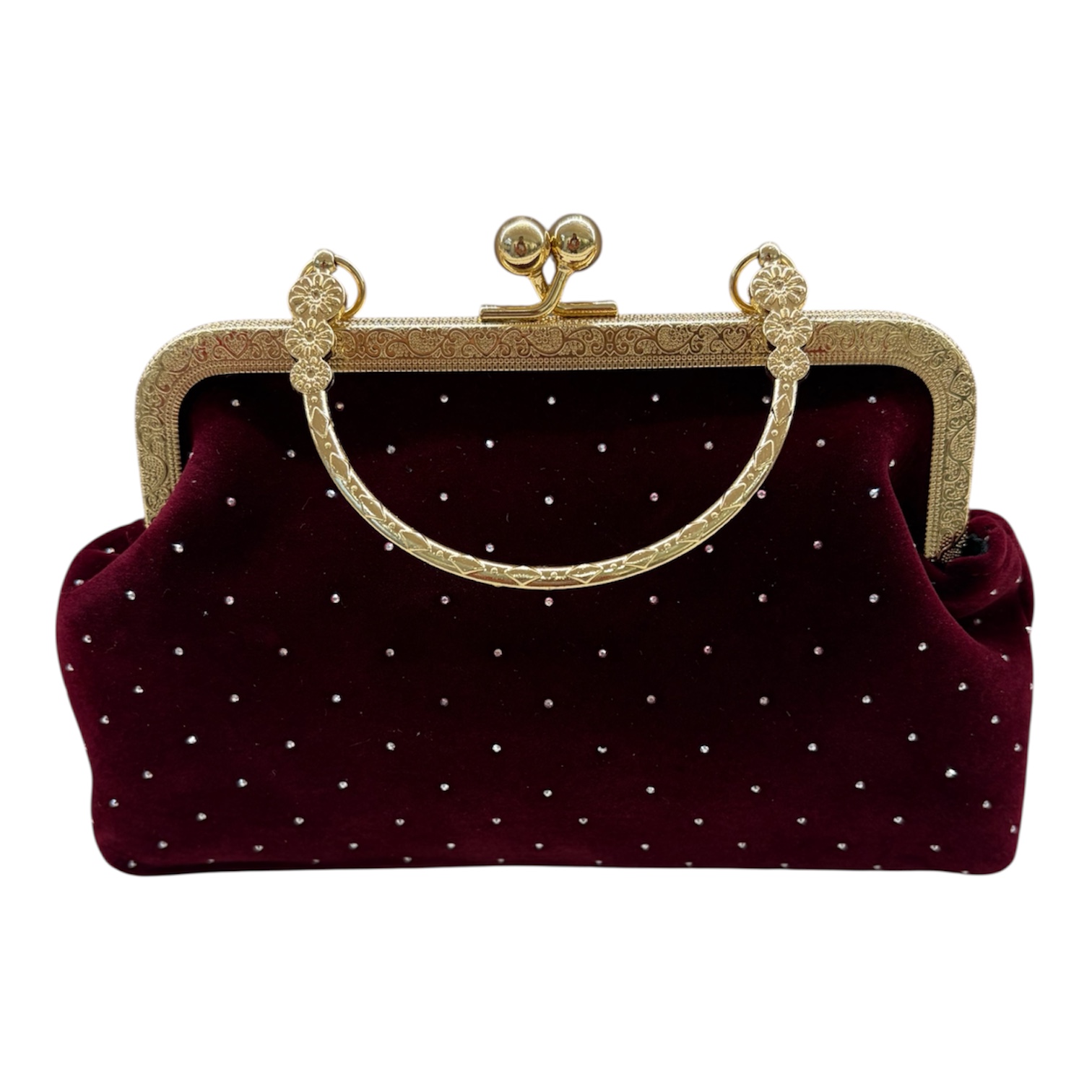 Τσαντάκι vintage σε μπορντο βελουδο με χρυσο κουμπωμα και χερουλι για να κρατιεται. περιεχει και χρυση αλυσιδα για να κρεμιεται. διασταση 22Χ21Χ6 εκατοστα