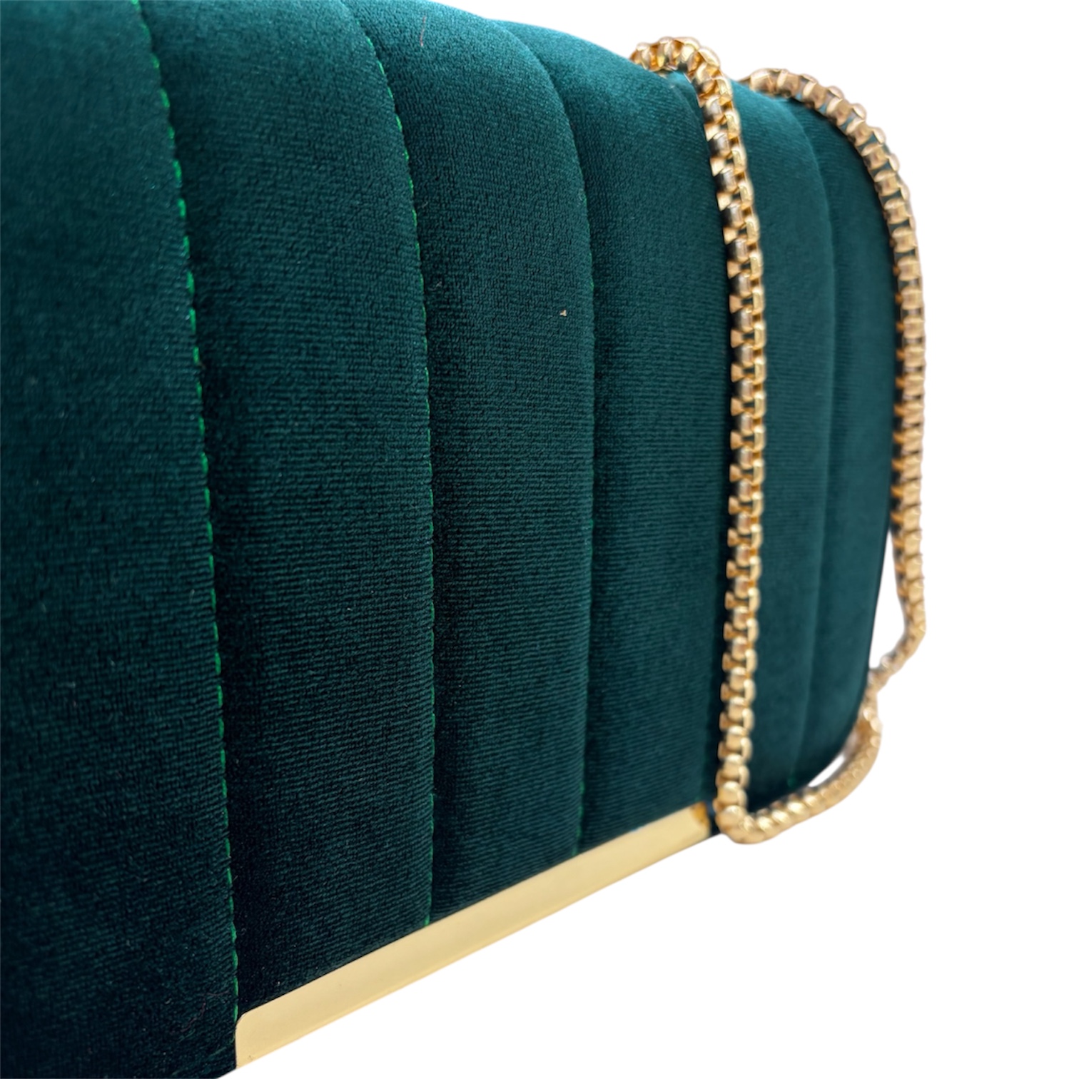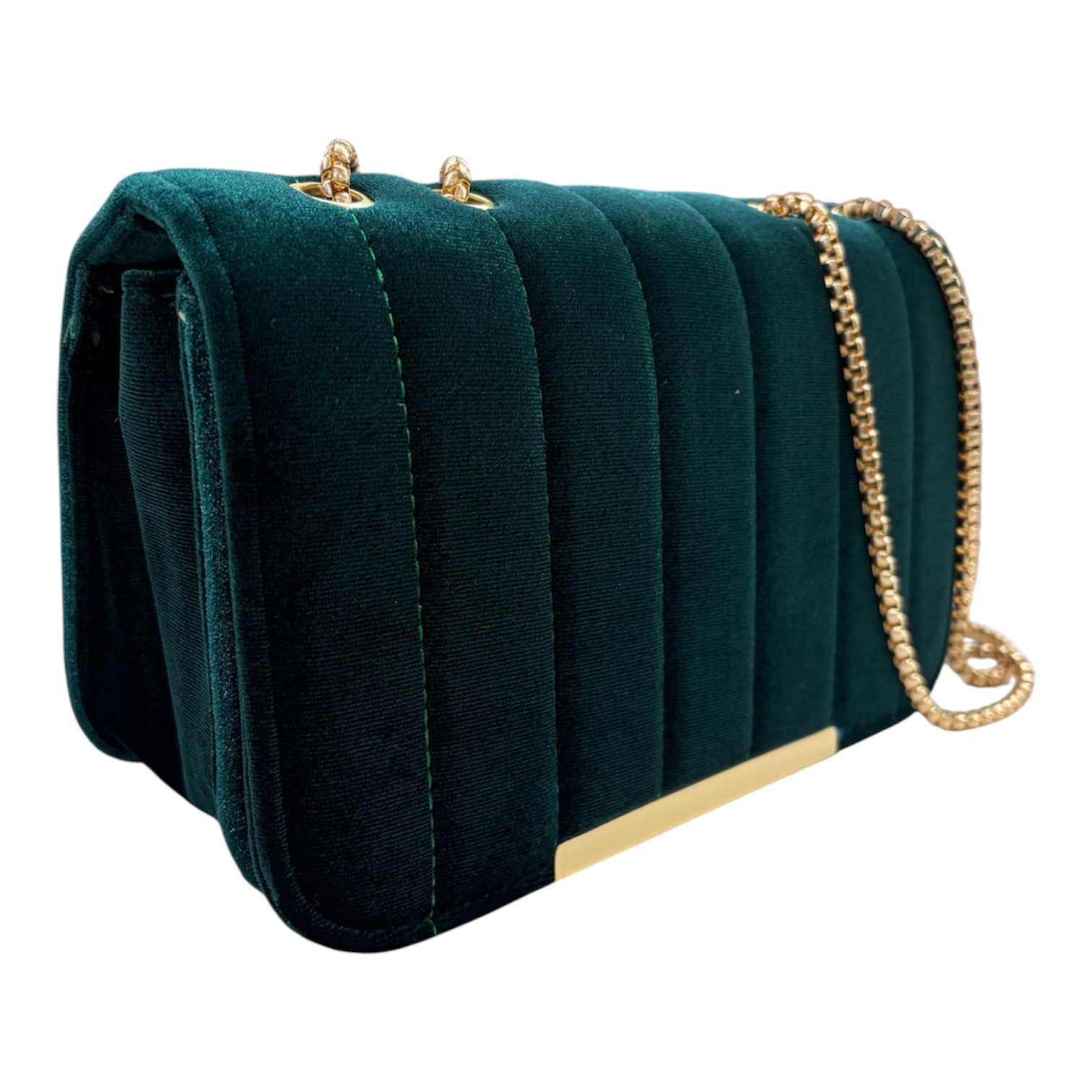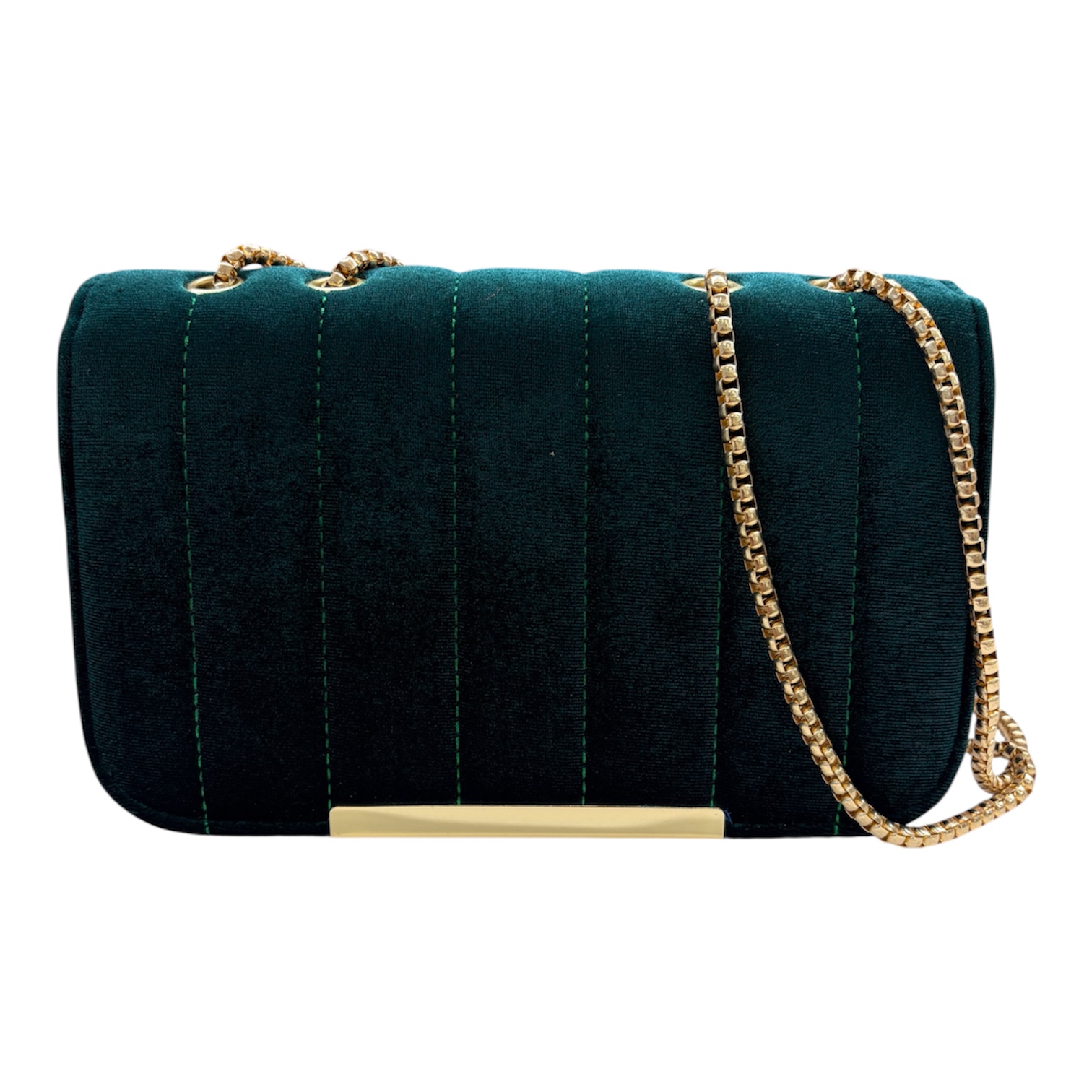 Τσαντάκι πράσινο βελούδινο με χρυσή αλυσίδα . διαστάσεις 23Χ14Χ9 εκατοστά